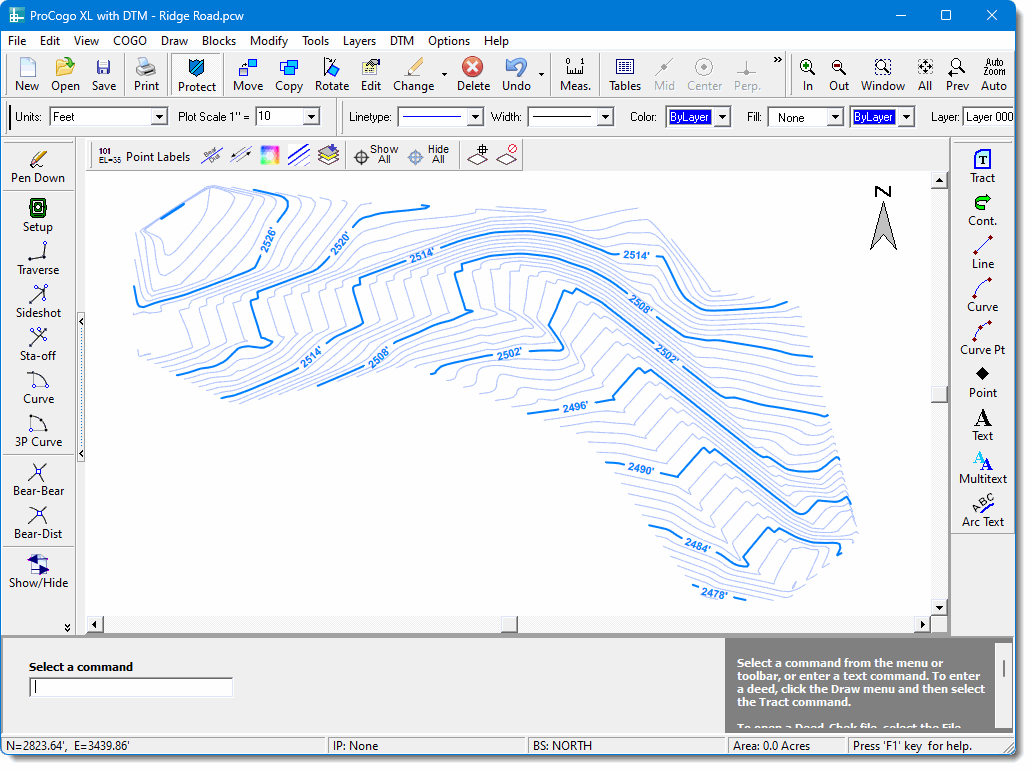 Contours are created automatically from the surface model by simply specifying the desired major and minor contour intervals. You can specify the line type, color, and label style for both major and minor contour lines. The entire process can be done in seconds. And if you need to change anything, the contours are automatically regenerated with the new changes applied.